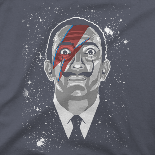 Si eres seguidor del blog ya sabes que me encantan las camisetas crossover o mashup, es decir, aquellas camisetas que combinan dos conceptos a priori diferentes y generan algo nuevo. Un gran ejemplo de este tipo de diseños es el que proponen los chicos de Camiseta Total, este genial diseño que mezcla a Salvador Dalí con David Bowie. Si te mola la puedes conseguir aquí.