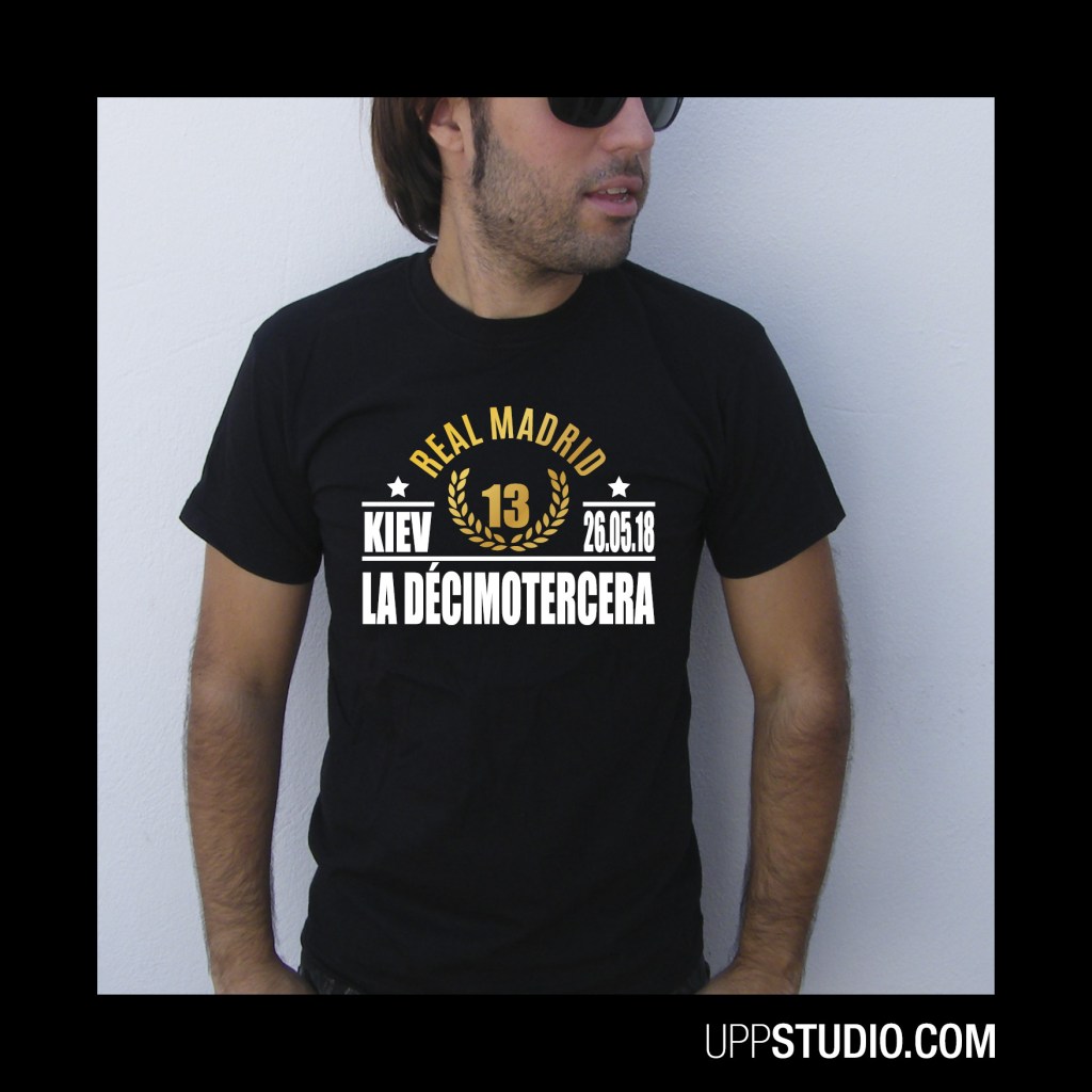 Tan sólo un año después parece que toca hacer lo mismo y los chicos de UppStudio se han currado esta camiseta conmemorativa de la Décimotercera Champions League del Real Madrid contra el Liverpool. Como verás, tiene la fecha de celebración del partido (26 de mayo) y el lugar del mismo (Kiev) con un estampado bicolor y detalles en efecto oro que son una pasada. Si te mola, como te avanzaba, la puedes encontrar en UppStudio, tienda online de camisetas y sudaderas frikis con envío gratis a España.