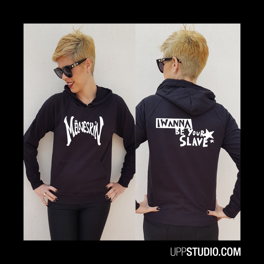 Si eres fan de Måneskin y de sus temazos como I Wanna Be Your Slave y su sensual vídeoclip, estarás deseando tener una sudadera como ésta. La puedes pillar en UppStudio, tienda online de camisetas y sudaderas frikis.