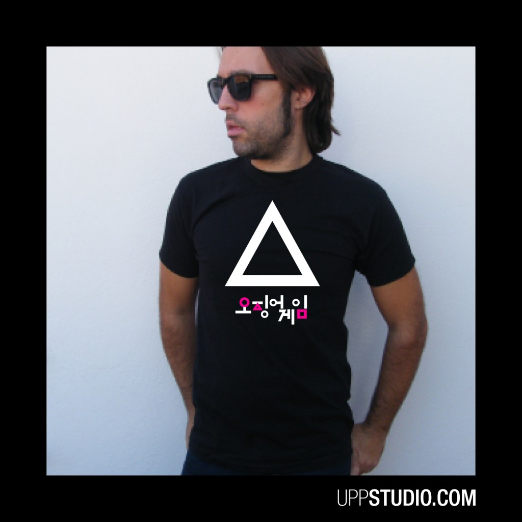 El juego del calamar, la serie sur-coreana de Netflix, nos ha petado la cabeza a todos. Si estás obsesionado con ella, ahora puedes elegir tu icono favorito (triángulo, cuadrado o círculo) y pillarte esta camiseta de El Juego del calamar. La puedes comprar en UppStudio, tienda online de camisetas y sudaderas frikis, al mejor precio y con envío gratis a España.