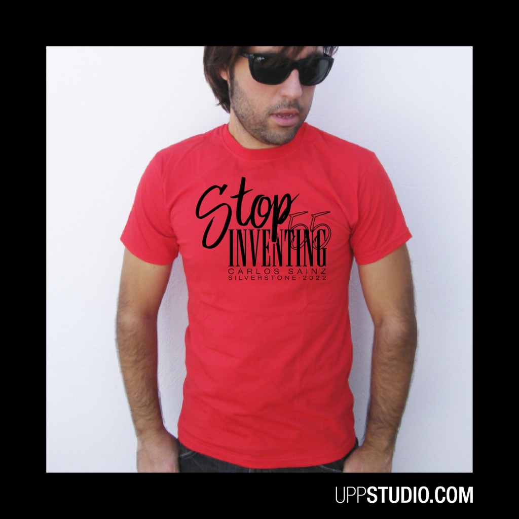 La ya legendaria frase de Carlos Sainz en Silverstone, STOP INVENTING, le catapultó a su primera victoria en la F1 con Ferrari, así que se merecía una camiseta conmemorativa. La puedes comprar en UppStudio, tienda online de camisetas y sudaderas frikis, al mejor precio y con envío gratis a España.